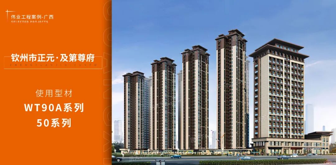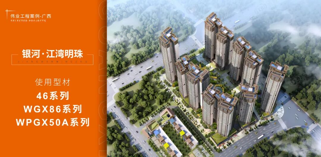 桂平碧桂園集商貿(mào)、人居、休閑、教育多功能于一身,同時(shí)緊鄰郁江,可享受一線江景資源。偉業(yè)為項(xiàng)目選取50系列、WTM100B系列、BGY45系列型材產(chǎn)品組合,匠心筑造。